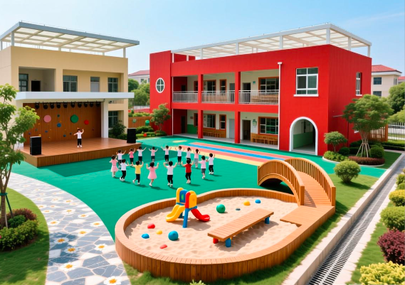 另外,卵石步行小道建设、广场的花岗岩石材的铺设,表演台的木塑地板安装,大型沙坑(内含攀爬设备)、平衡木的曲形桥搭建、园区内排水沟系统、整体的天棚乳胶漆等施工内容安装与修建,严格按国家要求的施工规范执行,在投标文件编写中,分别针对不同的专业部分进行了工艺分析与工序计划。