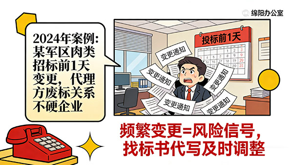 投标中偶尔有变更通知正常,但频繁变更需警惕。如2024年某军区肉类招标项目,投标前一天发变更通知,代理方以奇葩理由废标关系不硬的企业。频繁变更增加企业工作量,影响标书质量,还暗示项目或招标方有问题。绵阳企业遇此类项目谨慎参与,已参与可找标书代写服务调整内容。